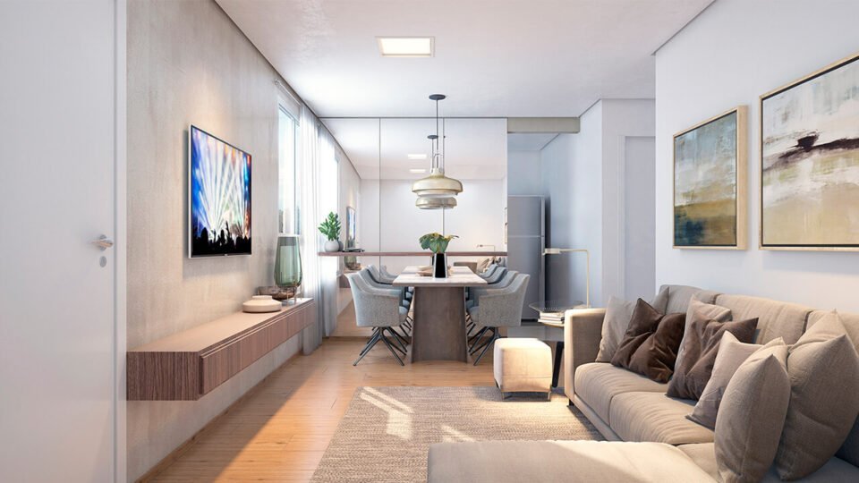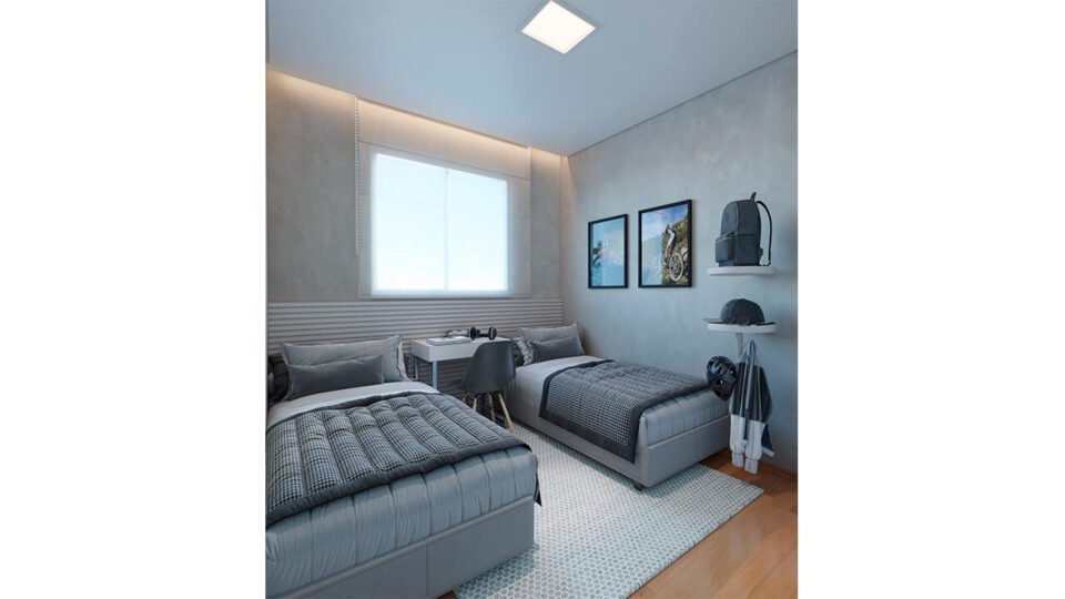 Apartamento 2 quartos – 3º andar com elevador, sol da manhã e vista livre para área de lazer.