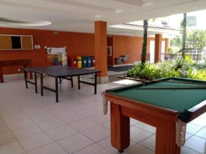 - Comodidades e Recursos: Brinquedoteca, Depósito de Lixo, Vista Montanha, Planejados na cozinha, Planejados na sala, Planejados nos quartos, Vandada ampla, Sacada na suíte, Box, Piscina Adulto, Piscina Infantil, Mini mercado, Restaurante, Quadra Poliesportiva, Quadra de Tênis, Academia com professores, Espaço Zen, Espaço Pet, Churrasqueira, Salão de Festas, Espaço Gourmet, Monitoramento por câmeras, Portaria 24 horas, Segurança 24 horas, Ônibus do condomínio, Sauna Seca, Sauna Vapor, Wifi, Cinema, Salão de jogos, BOX, Bicicletário, Pranchário, semi-mobiliado