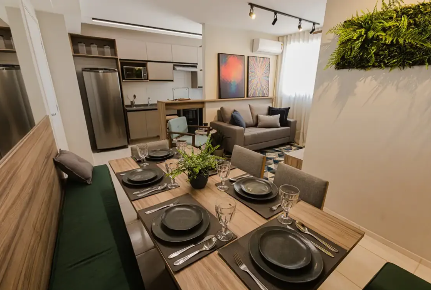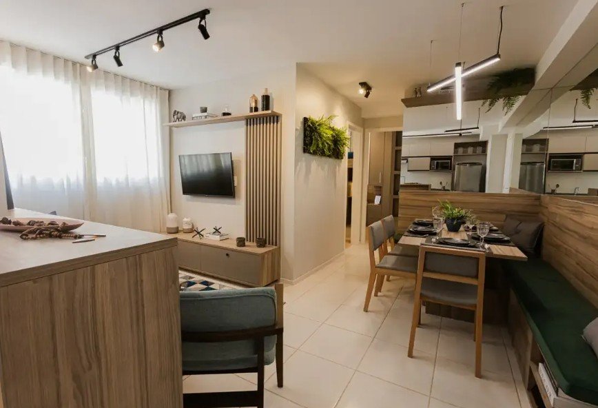 - Cozinha americana integrada à sala.