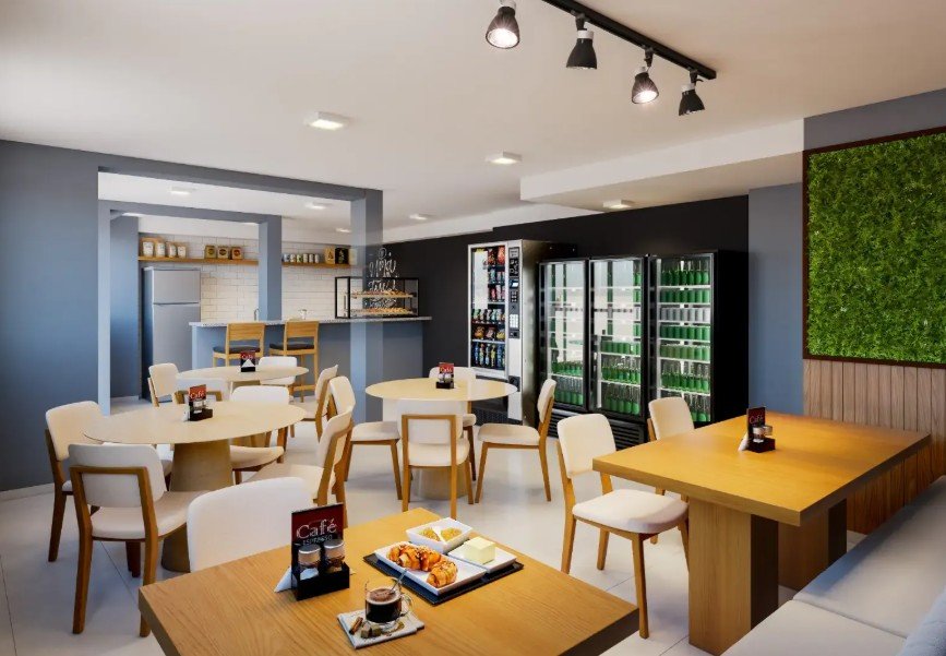 - Coffee shop e coworking no térreo, facilitando o dia a dia.