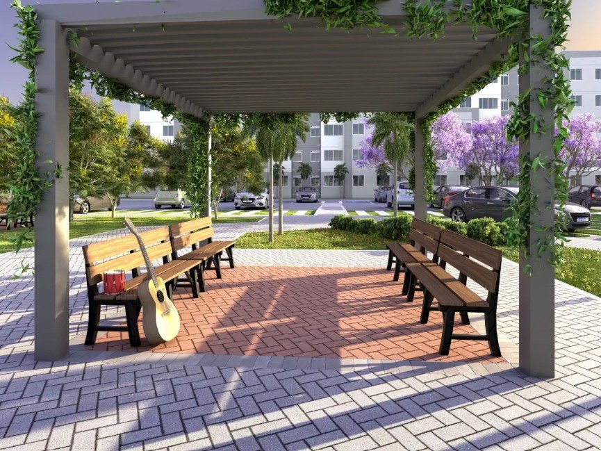 - Bicicletário e horta comunitária.
