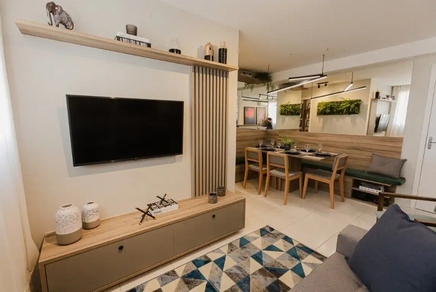 Áreas privativas: unidades tipo de aproximadamente 43,05 m² a 56,89 m², com opções garden até cerca de 84,57 m².